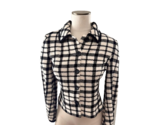 This is a rare and pre-owned (excellent condition!) cardigan sweater jacket by St. John. This classic sophisticated jacket is slightly cropped (hits around the natural waistline - top of hip area) and features a gorgeous houndstooth pattern. Button-front, shoulder pads, long sleeves and princess seams for a flattering fit.