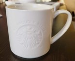 STARBUCKS Minimalist White Embossed Logo Coffee Mug Cup 12 oz
