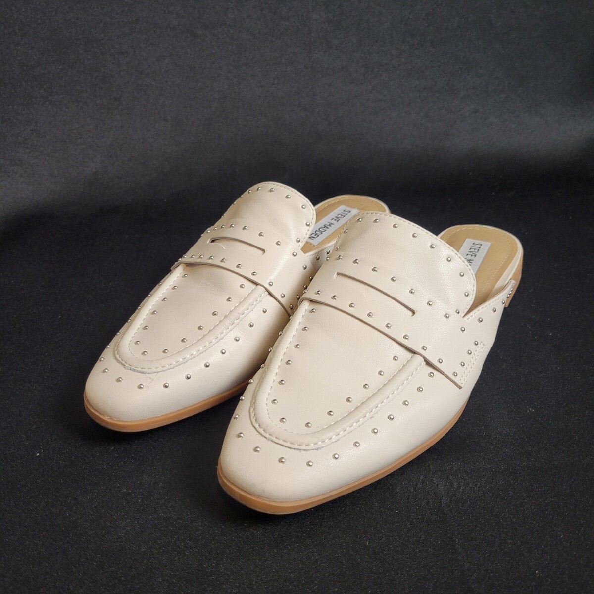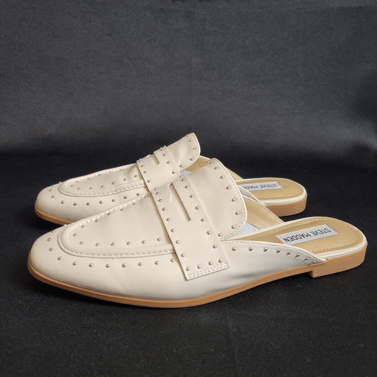 - STEVE MADDEN Kendle Bone Studded Leather Mules 8.5 Excellent Condition Shoes