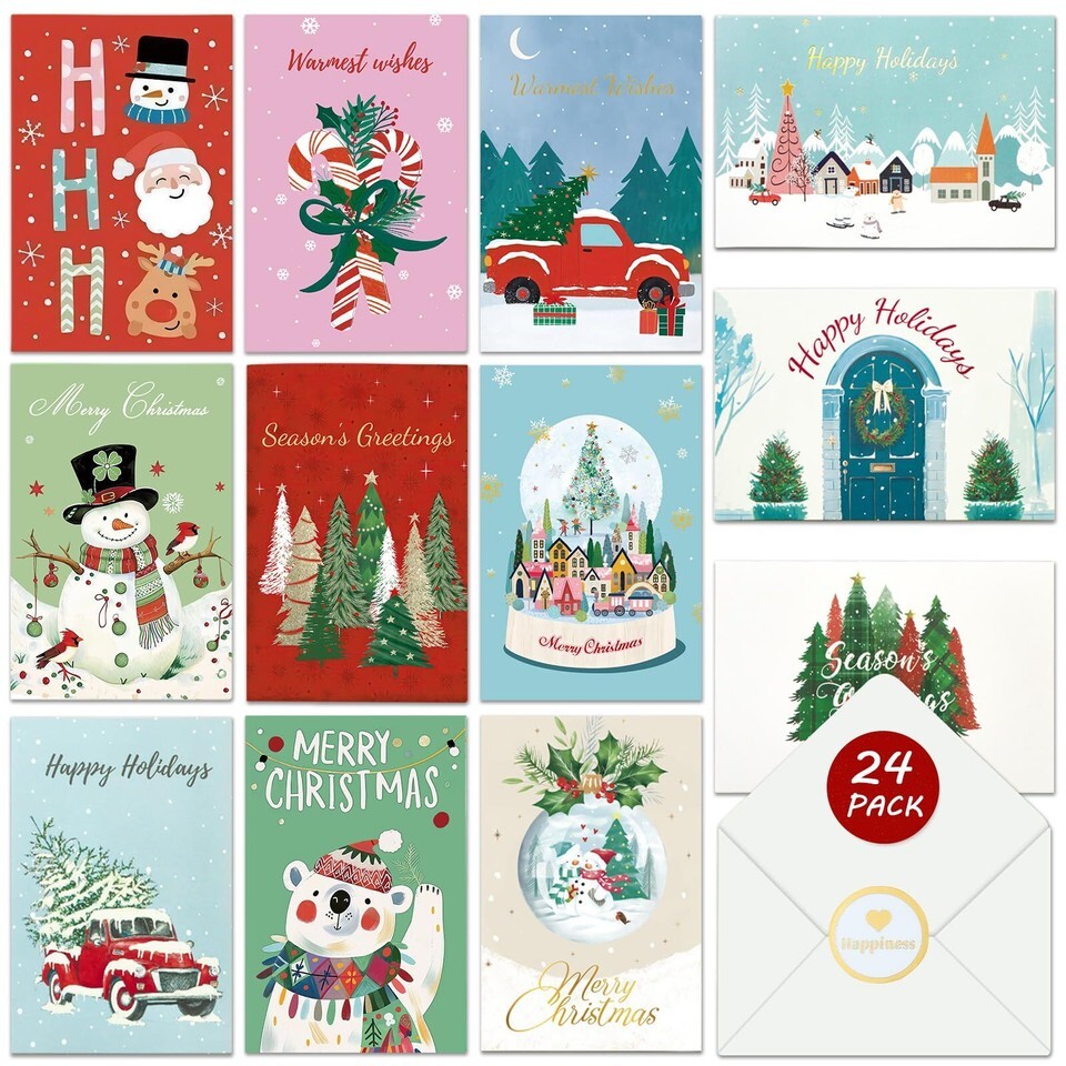 - STYPOP Boxed Christmas Cards 24-Pack 4x6" Blank Inside Assorted Designs
