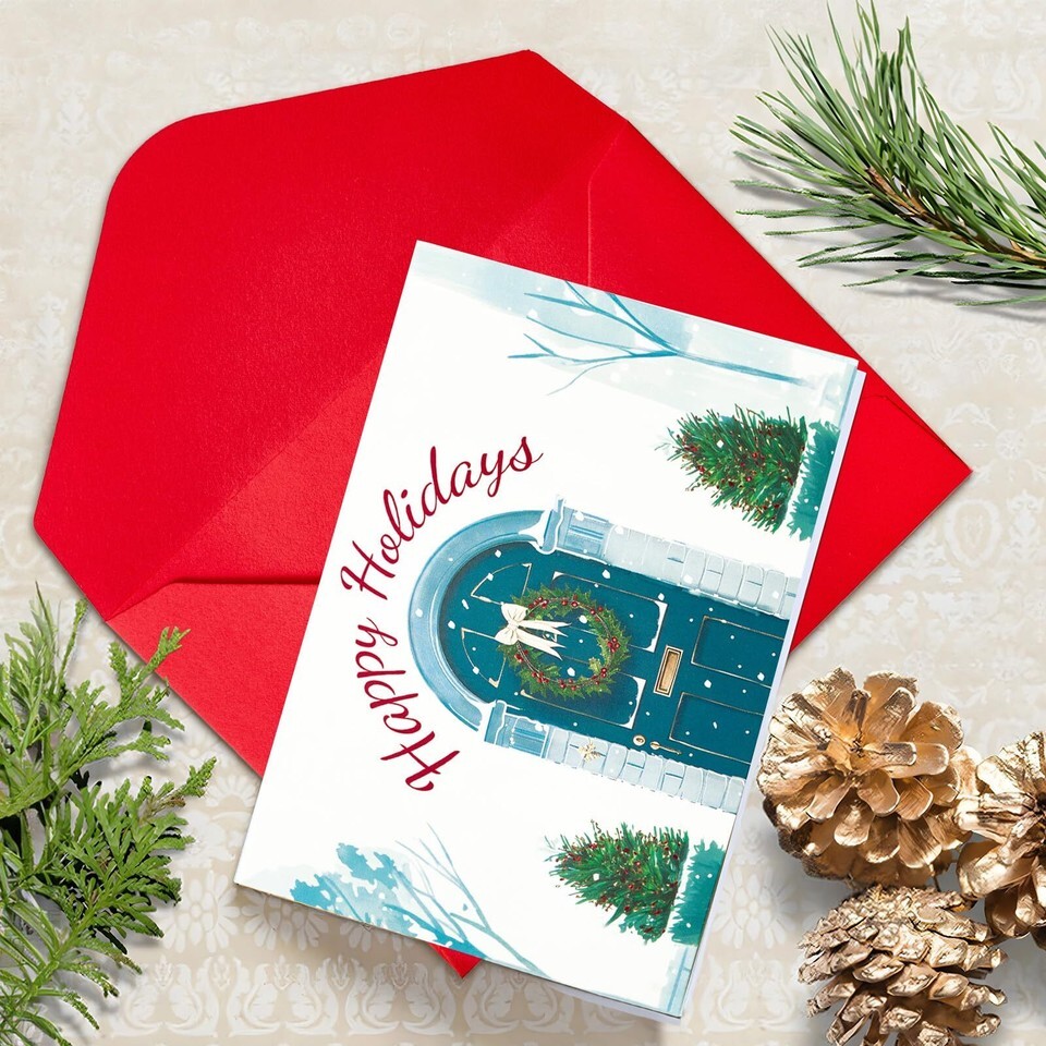 PREMIUM QUALITY AND DURABILITY: Printed on sturdy 300gsm cardstock, these happy holidays cards with envelopes are designed to impress. The 120gsm envelopes provide a luxurious feel and durability, ensuring your greetings arrive in perfect condition.