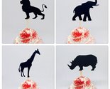 Product description: Safari cupcake toppers, safari cupcake topper, safari decor, safari party, elephant cupcake, lion cupcake, Rhino cupcake, giraffe cupcake, animal cupcake toppers, safari baby shower, zoo baby shower Rhino approx 2.5x1.5 Elephant approx 2x2 Lion approx 2x2 Giraffe approx 3x2 (sizes not including pick) Made with black cardstock(black on the reverse) Single sided Quantity 12 toppers 3 of each design Message me if you have a request for a custom order