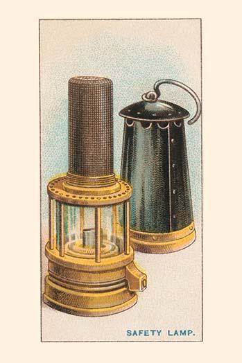 12inch x 18inch Poster Although it was well known that the air of coal mines contained gas which caused explosions on coming into contact with naked lights, it was not until 1815 that a practical safety lamp was devised. Sir Humphrey Davy found that a tube of wire gauze so cools a flame atempting to pass, that in prevents the ignition of flammable gas on the other side, and this principle is embodied in the "Davy" lamp. - There is a border around the image. Image size is correct.