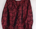 - Sag Harbor Red One Button Blouse With Black Flocked Velvet Floral Design Medium