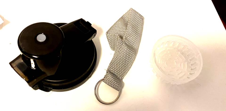 It features a twist locking system to prevent spills and it comes with a removable key chain handle for easy carrying. It also has a multi-purpose trap on the top for fruit infusion or to hold a tea bag.