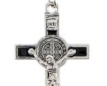 Saint Benedict Black & Silver Crucifix on Cord Necklace, New #AB-292-R2
