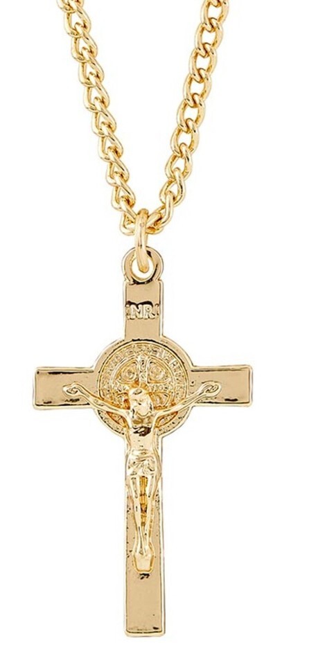 - Saint Benedict Gold tone Crucifix Necklace, New #AB-077