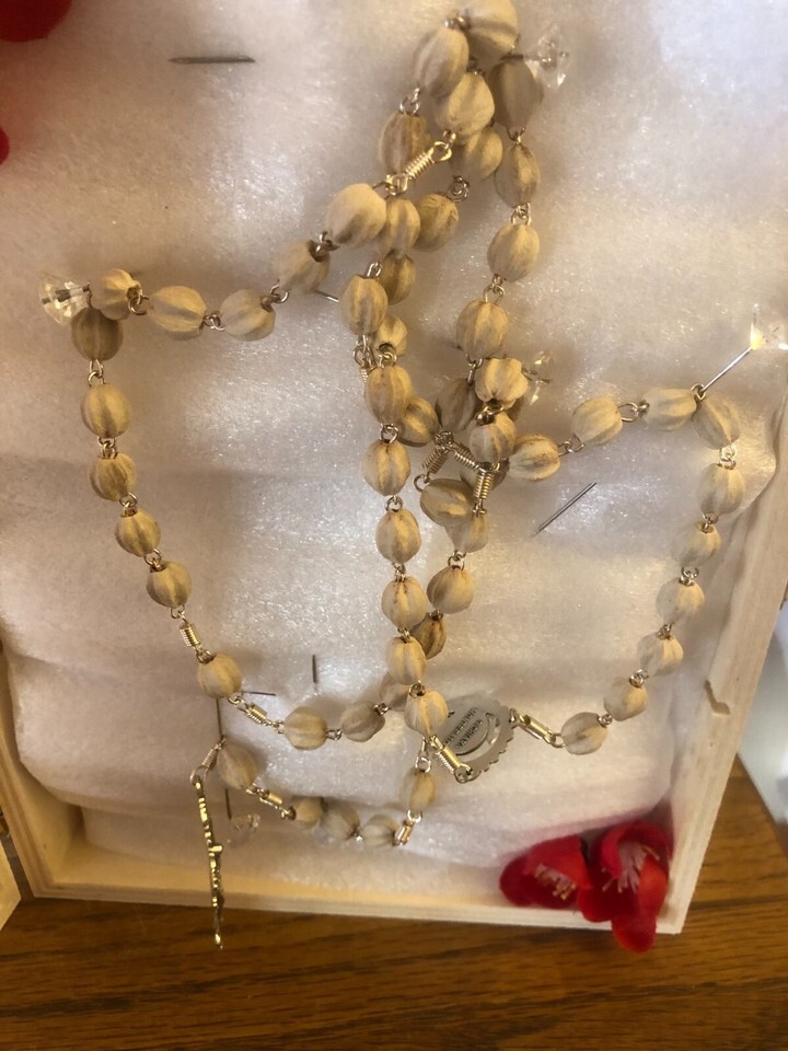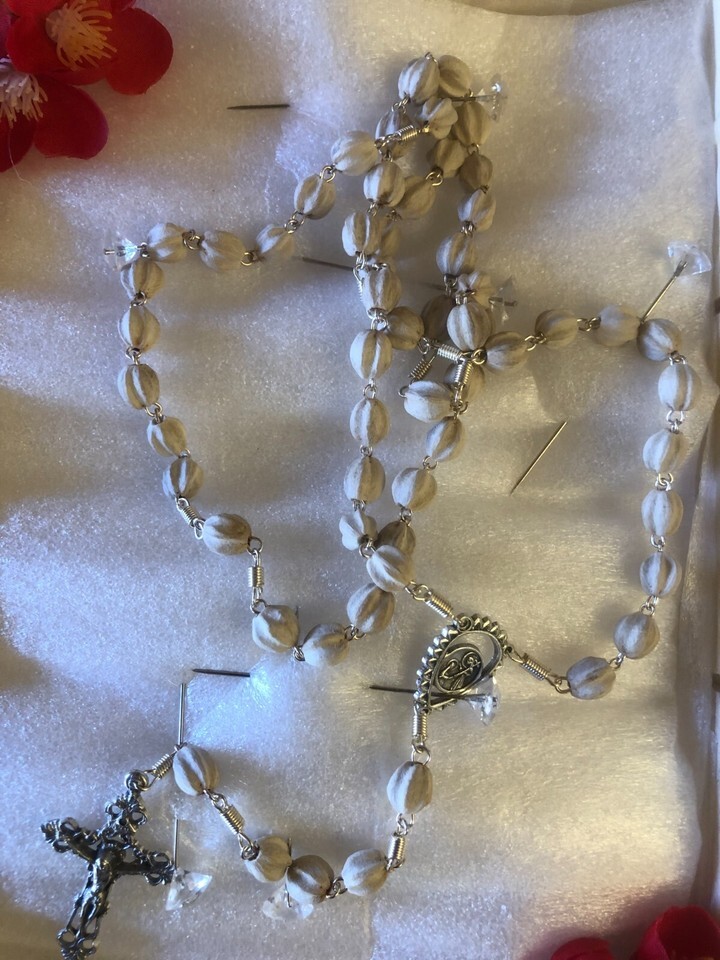 You are purchasing a beautiful handmade rosary by the Augustinian nuns at her convent in Montefalco, Italy from the nuts/seeds of the tree of Saint Clare of Montefalco. This is a must have, being that they are difficult to obtain and are very limited. If you know the life story of St Clare you will know how this seeds came about: