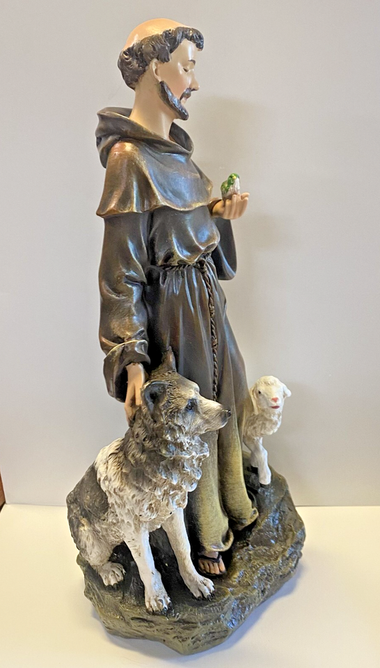 You are purchasing a beautiful 9.75" statue of Saint Francis of Assisi with the wolf of Gubbio and a lamb.