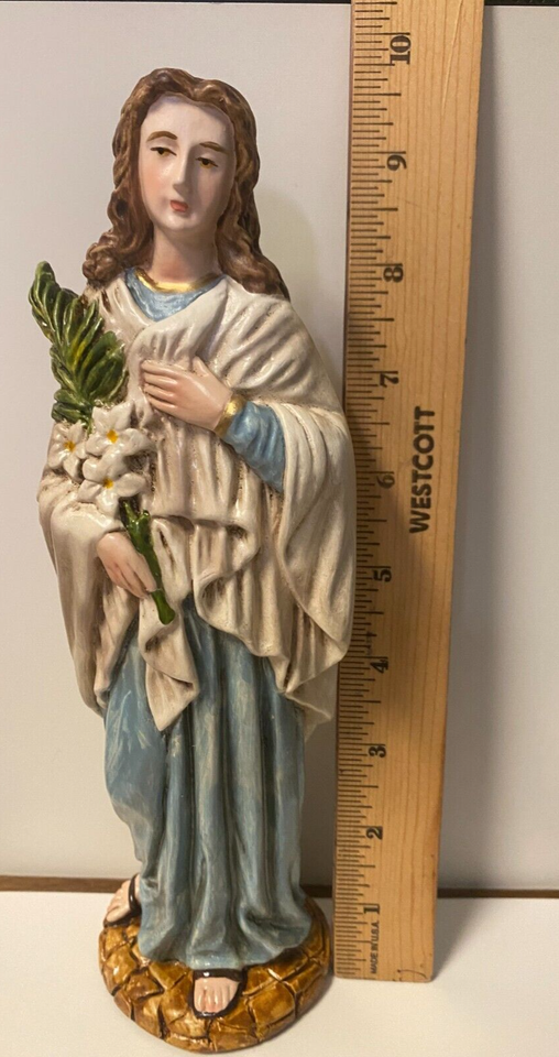 You are purchasing a beautiful 9.5" statue of Saint Maria Goretti. She is known as the saint of purity. The little white crimson rose of Jesus. She is an example for the youth to follow for her purity, and love for Jesus.
