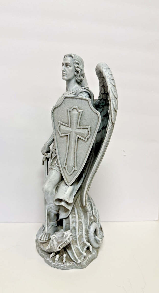 You are purchasing the most beautiful, very nicely detailed 12.25" statue of Saint Michael the Archangel. It has a stone finish. (see picture)