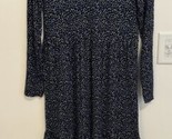 For sale is a Saint + Sofia Women's Long Sleeve Knit Heart Print Smock Shirt Dress. Black fabric with blue and beige hearts all over.