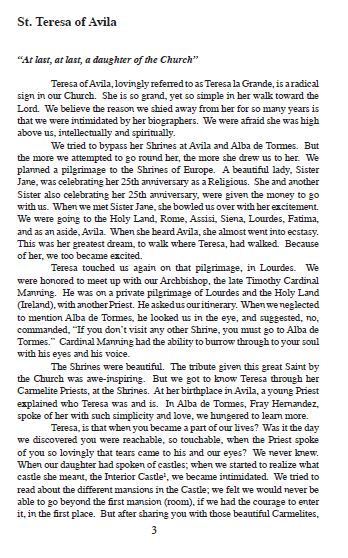- Saint Teresa of Avila Pamphlet/Minibook, by Bob and Penny Lord