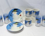 Sakura Cherry Snowman Salad Plates Mugs Glasses Christmas Lot of 10 Xmas