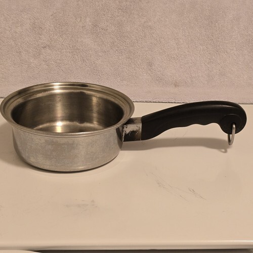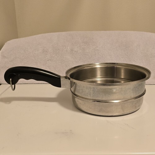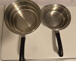 Great pre-owned Condition (1) Saladmaster 8.75" W x 3.5" H x 6.75" (Handle) Stainless Steel 3 Qt Steamer Insert Only - Nice tight handle. Normal wear - has not been scrubbed or polished. + (1) Saladmaster Five Star T304S Stainless Steel 7" W x 2.75" H x 6.75" (Handle) Saucepan without Lid. Nice tight handle. Normal wear - has not been scrubbed or polished. It has some black burned marks on the handle base. Please See all Photos!