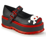 - SALE DEMONIA SLACKER-27 Womens Black Red Punk 2" Platform Skull Maryjane Shoes 9