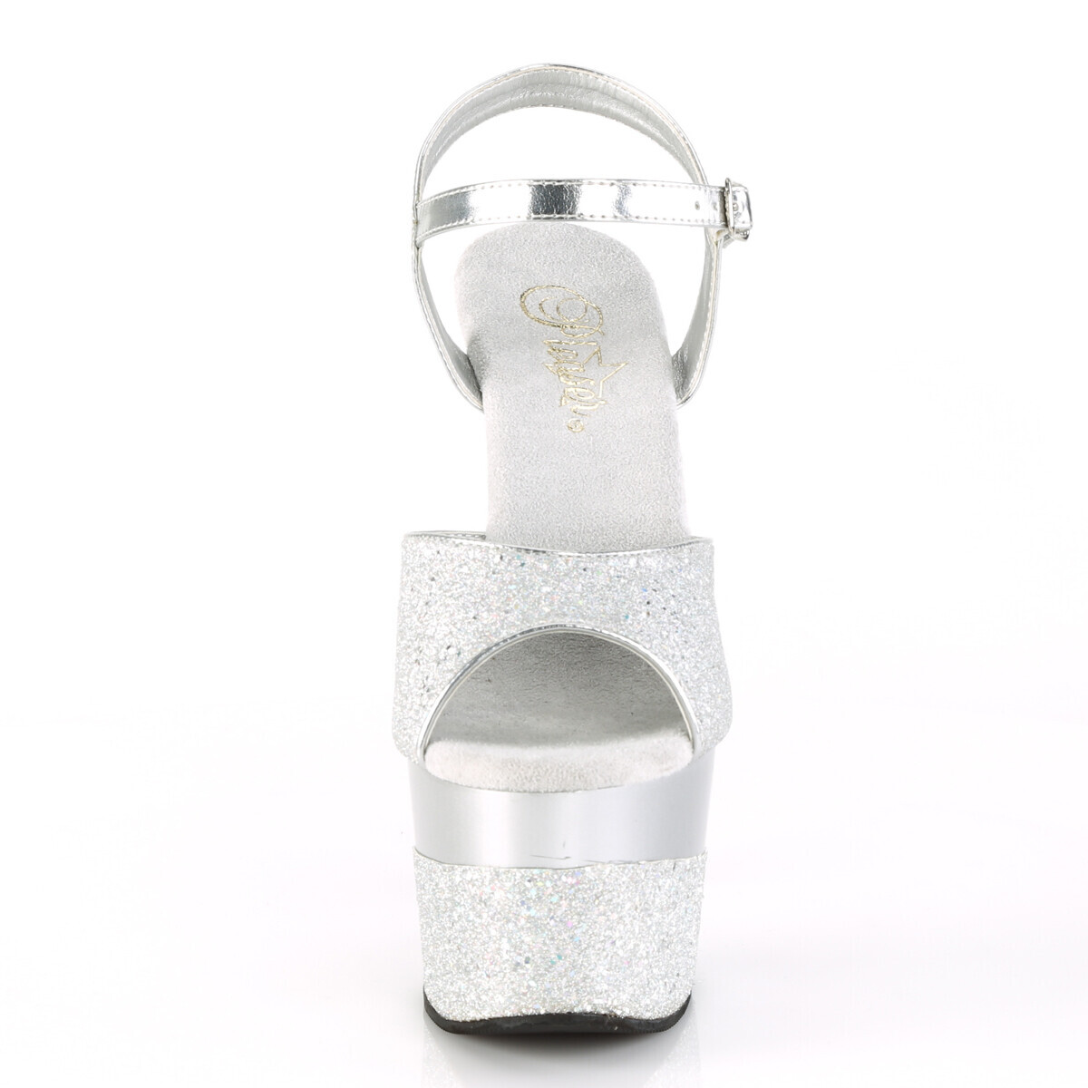 - SALE PLEASER ADORE-709-2G Women's 7" Heel Platform Ankle Strap Glitter Shoes 8