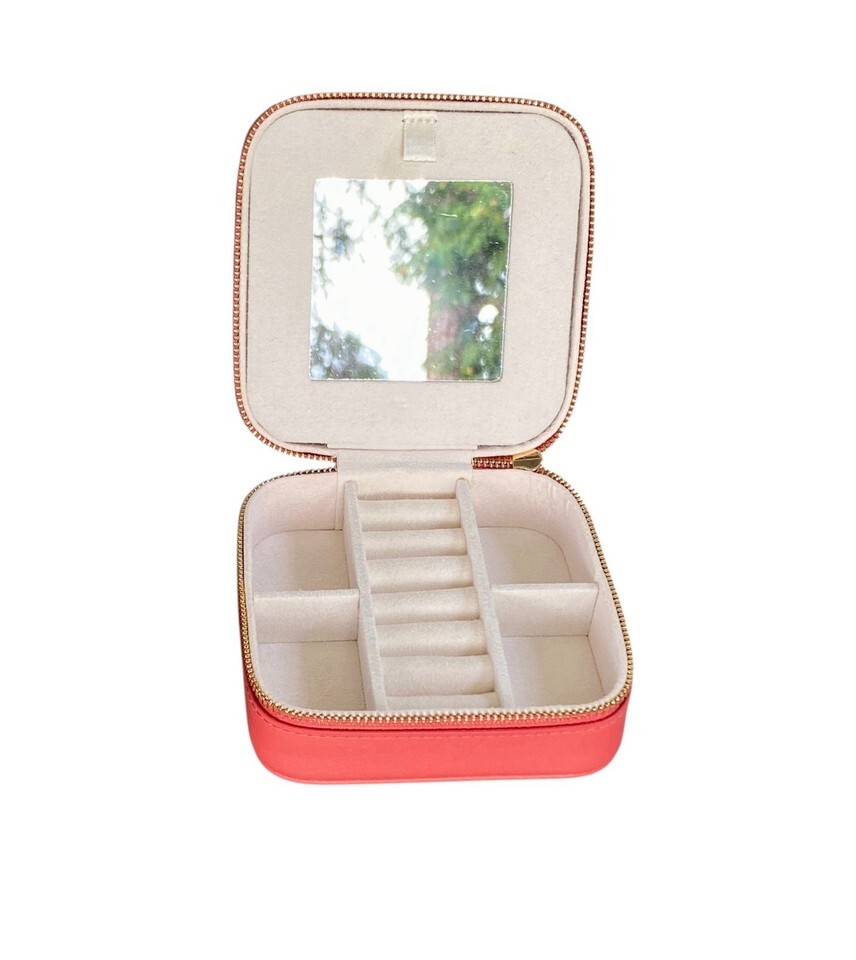 Salmon Jewelry Organizer Travel Zipper Ring Holder Gift Mirror Portable New 4”