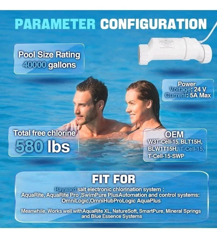 - Salt ChIorination Cell T-15 Replacement for Hayward TurboCell W3T-Cell-15