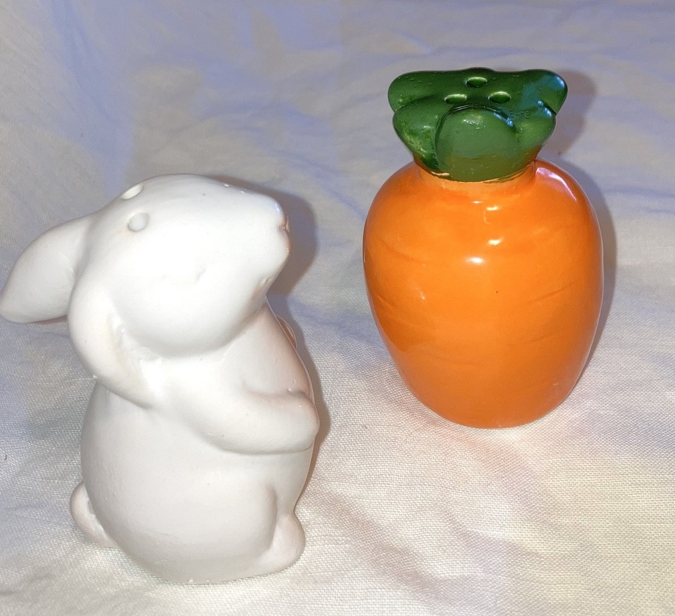 - Salt and Pepper Shakers cute Bunny Carrot set porcelain NEW