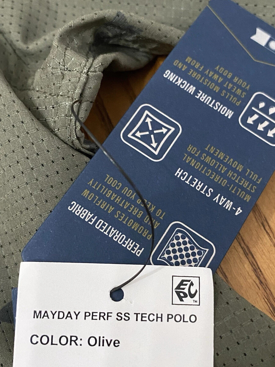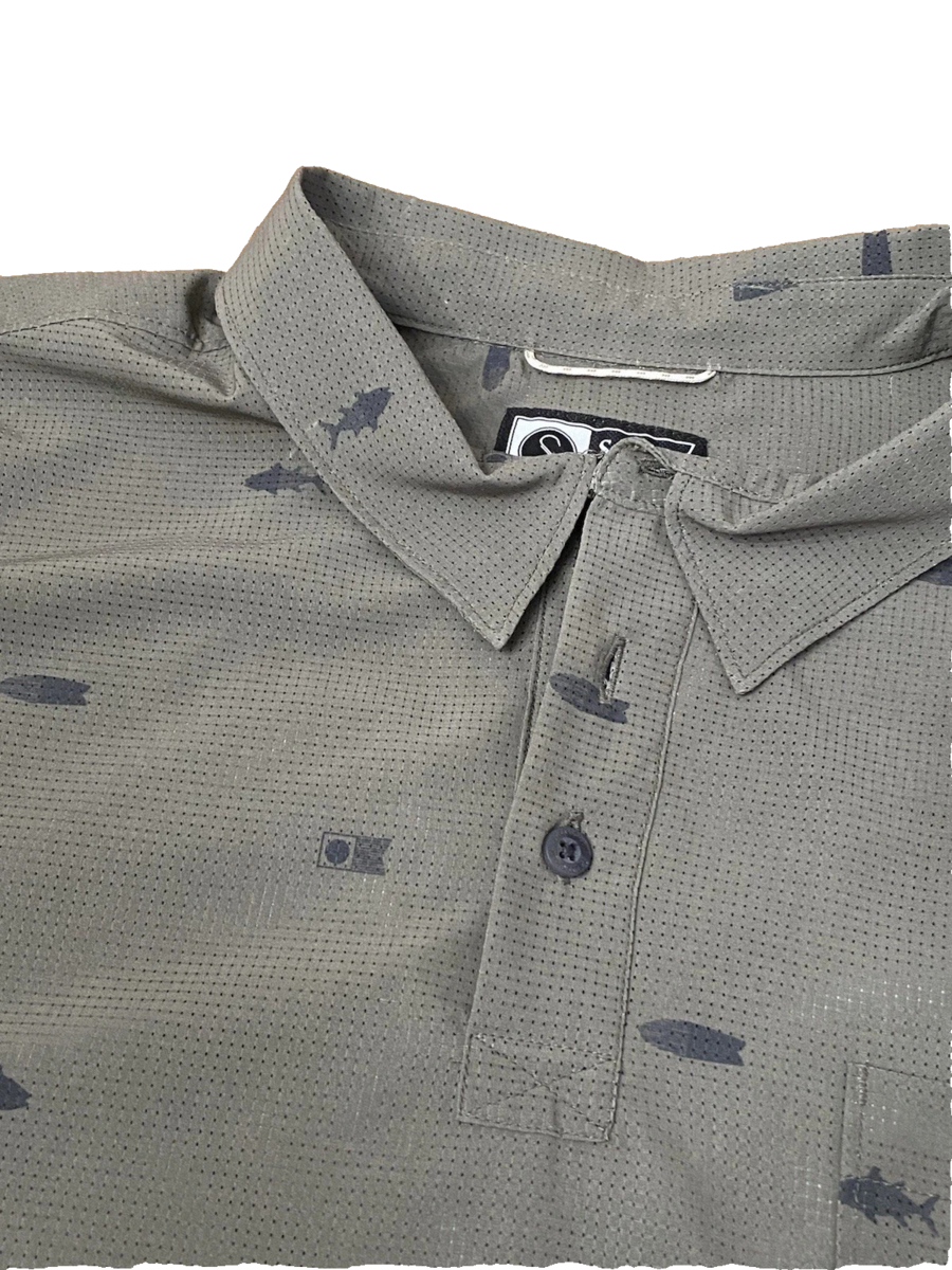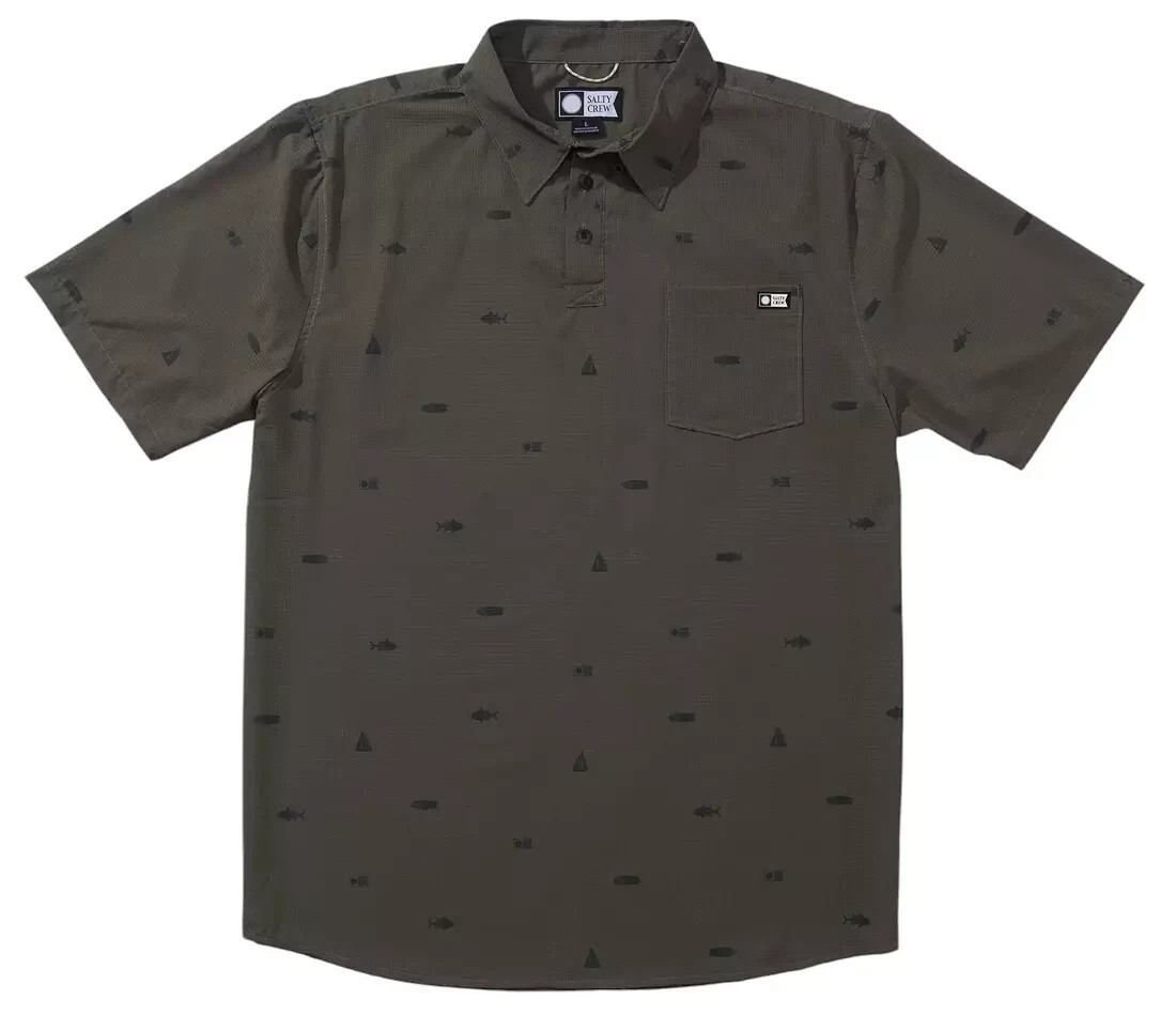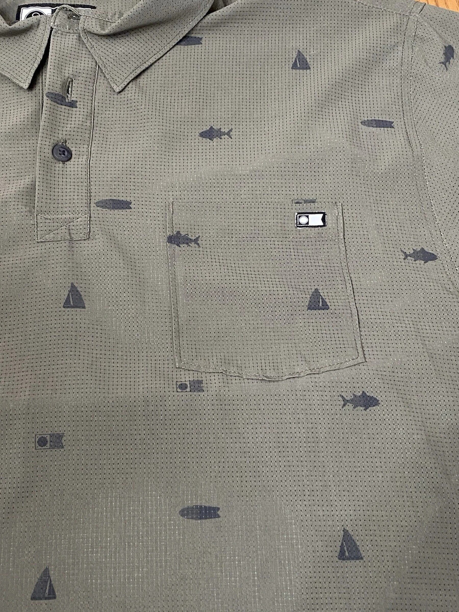 - Salty Crew Men's Mayday Perforated Tech Short Sleeve Polo Olive Green Size Large