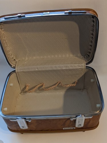 A vendre, un etui rigide Samsonite Silhouette Tourister Brown Makeup Train d'occasion comme neuf.