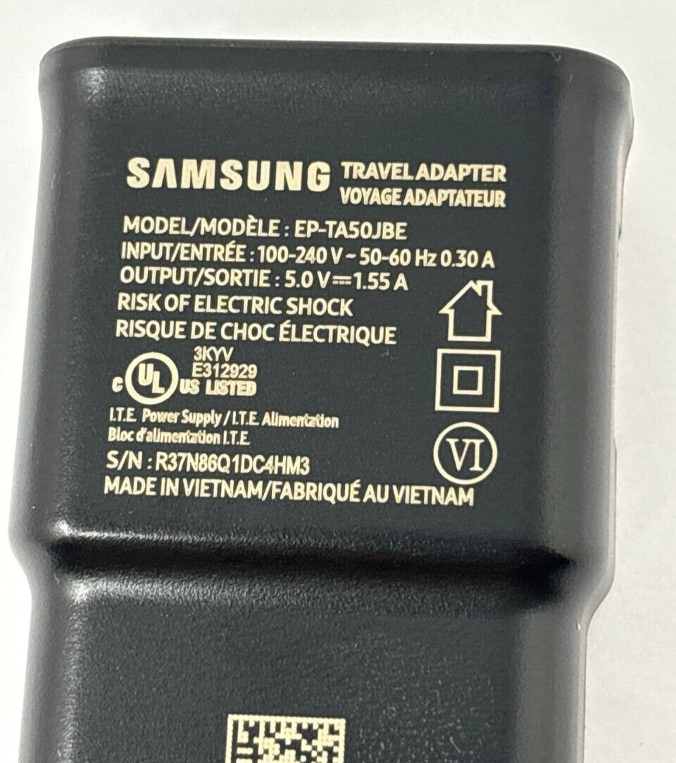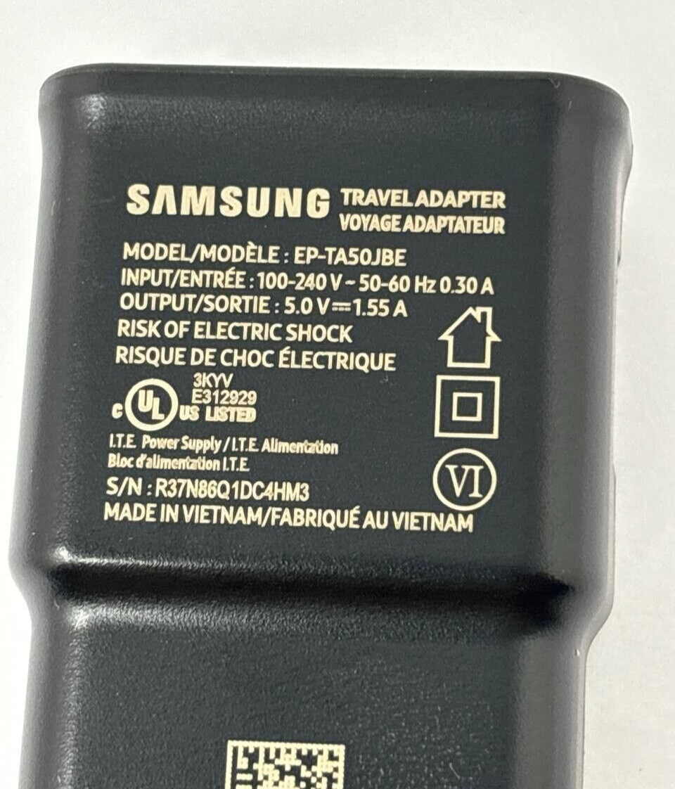 - Samsung EP-TA50JBE USB Wall Charger Travel Adapter 5V 1.55A for Galaxy S6 S8 S9