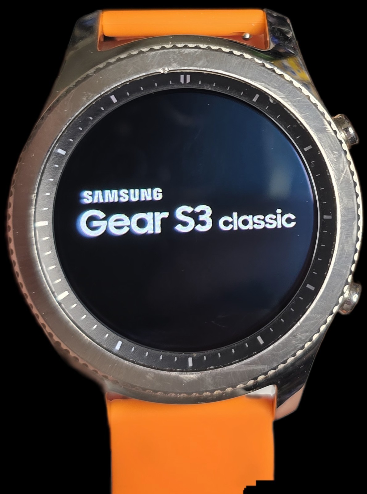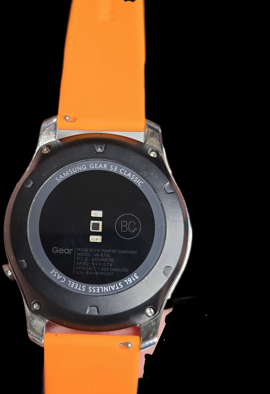 - Samsung Galaxy Gear S3 Classic 46 mm Stainless Steel Silver Case and Orange Band