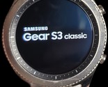 The Samsung Galaxy Gear S3 Classic is a stylish smartwatch with a sleek 46mm stainless steel silver case and a comfortable orange silicone band. This unlocked device runs on the Tizen operating system and offers a range of features such as a fitness tracker, Bluetooth connectivity, water resistance, and a heart rate monitor. With a storage capacity of 4GB, this smartwatch is compatible with both iOS and Android operating systems, making it a versatile and convenient accessory for everyday use.
