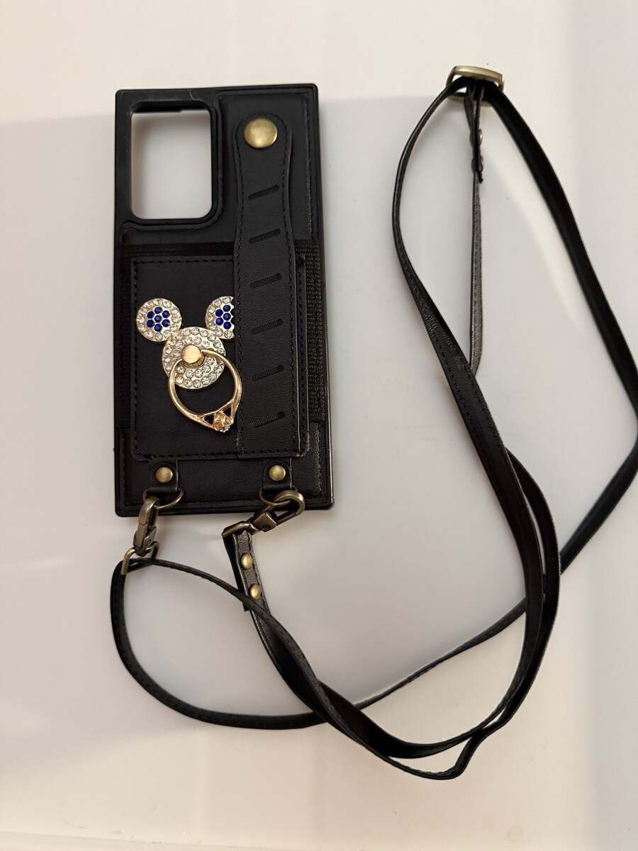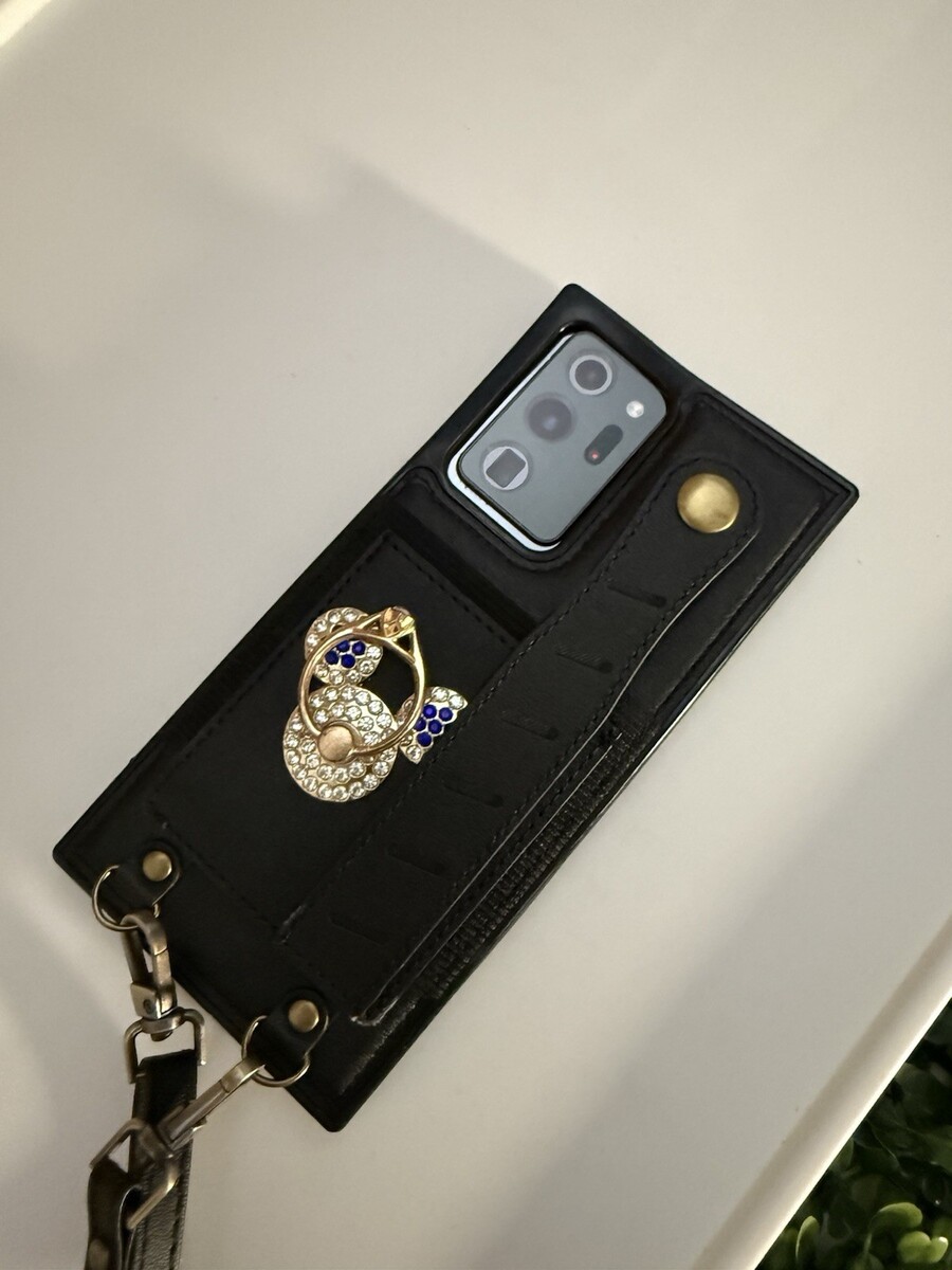 - Samsung Galaxy Note 20 Ultra 5G Crossbody Case Black Leather w/ Bling Ring