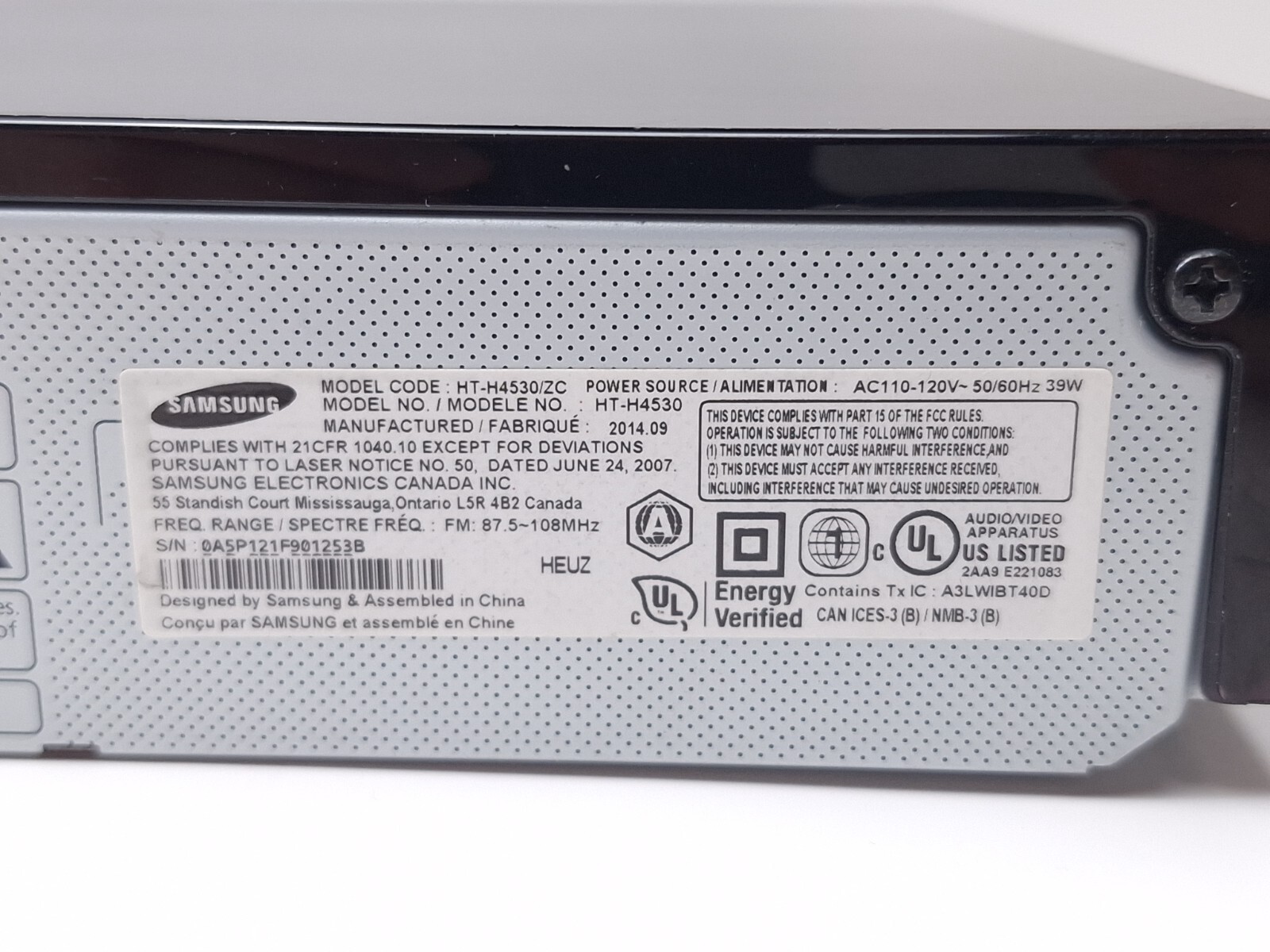 - Samsung HT-H4530 3D Blu-ray/DVD Home Theatre Unit Only No Remote Tested
