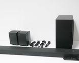 Description: Includes Soundbar, Subwoofer, Rear Speaker Kit, HDMI Cable, 4 x Power Cables, Remote Control with Battery. Scratches and scuffs all over the bodies of soundbar, sub and speakers.