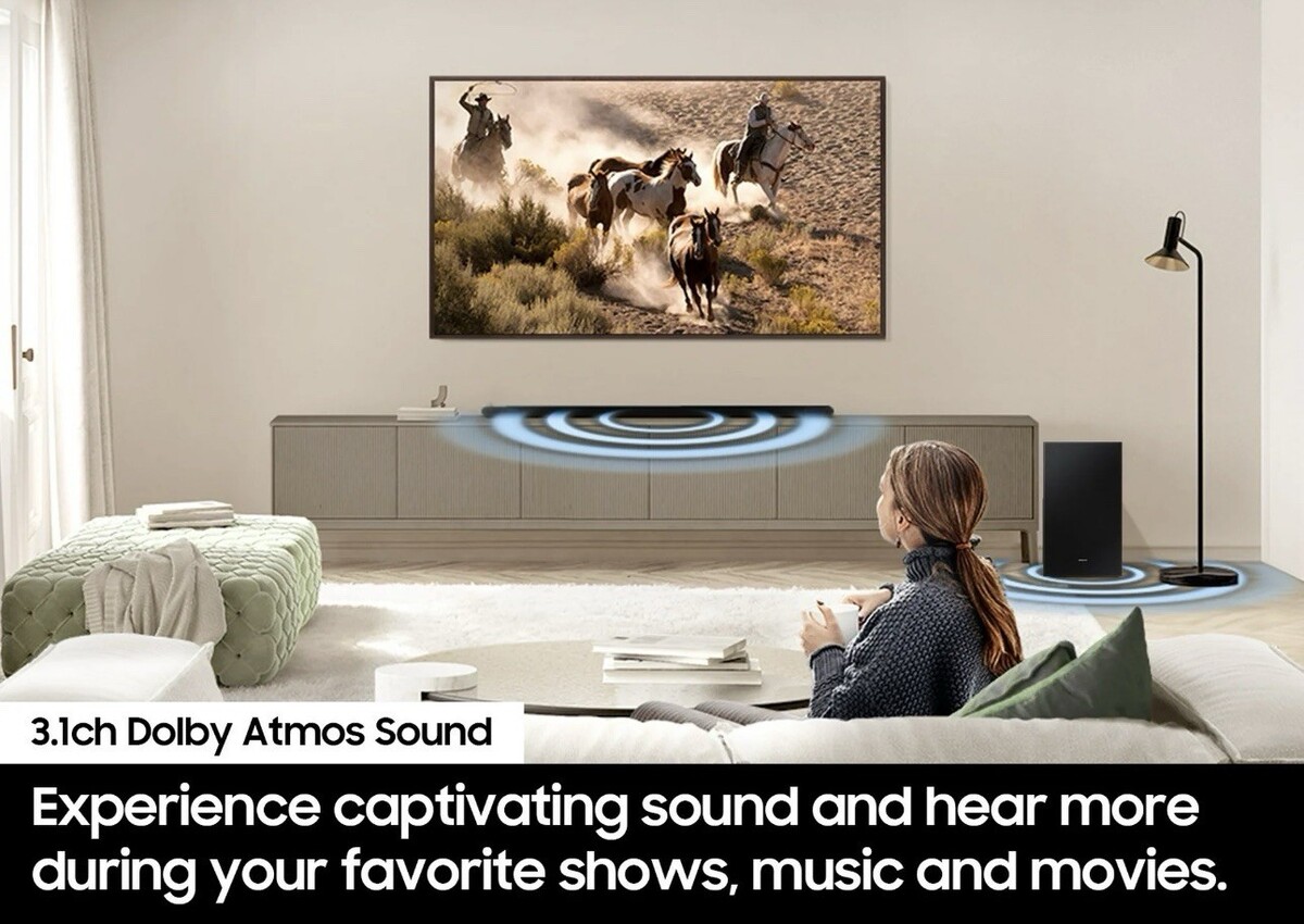 ? 3.1 Ch. Dolby Atmos Sound-Experience captivating sound and hear more during your favorite shows, music and movies with 3.1ch Dolby Atmos sound.