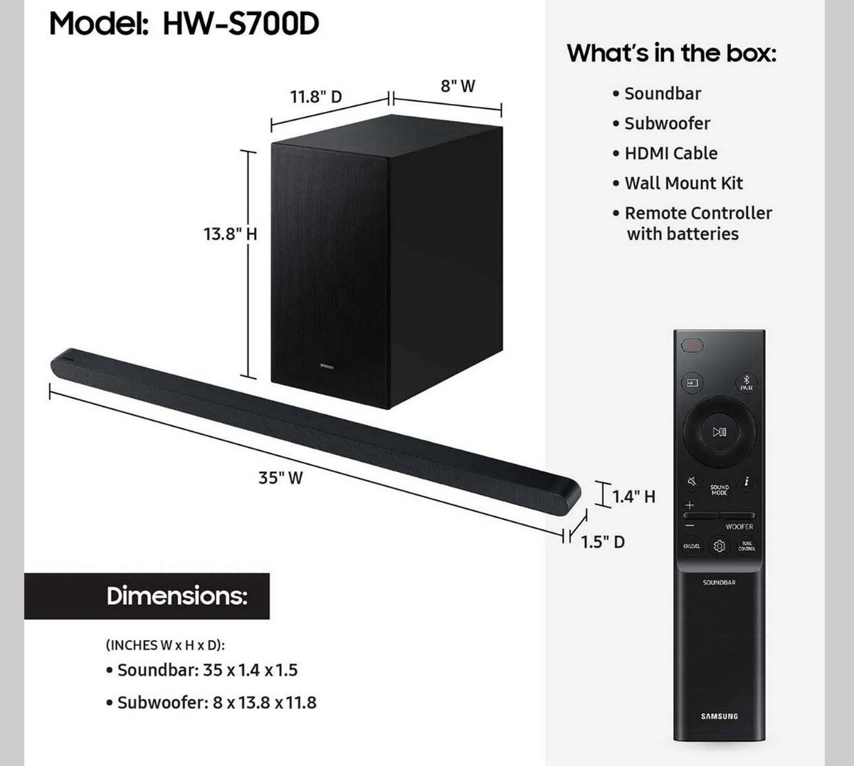 - Samsung - HW-S700D 3.1 Channel S-Series Soundbar with Wireless Subwoofer