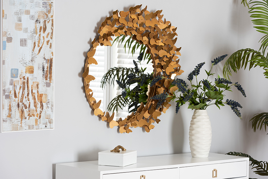 - Samuel Modern Antique Goldleaf Metal Butterfly Accent Wall Mirror