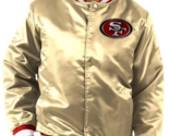 Show off your team spirit in style with this officially licensed San Francisco 49ers Gold Satin Varsity Jacket ? a bold tribute to one of the NFL's most iconic franchises. Crafted from premium-quality glossy satin, this eye-catching bomber jacket features the classic 49ers logo embroidered on the chest, delivering both vintage appeal and modern flair.