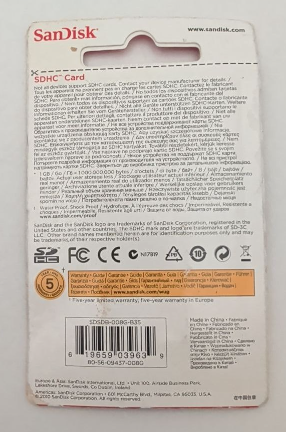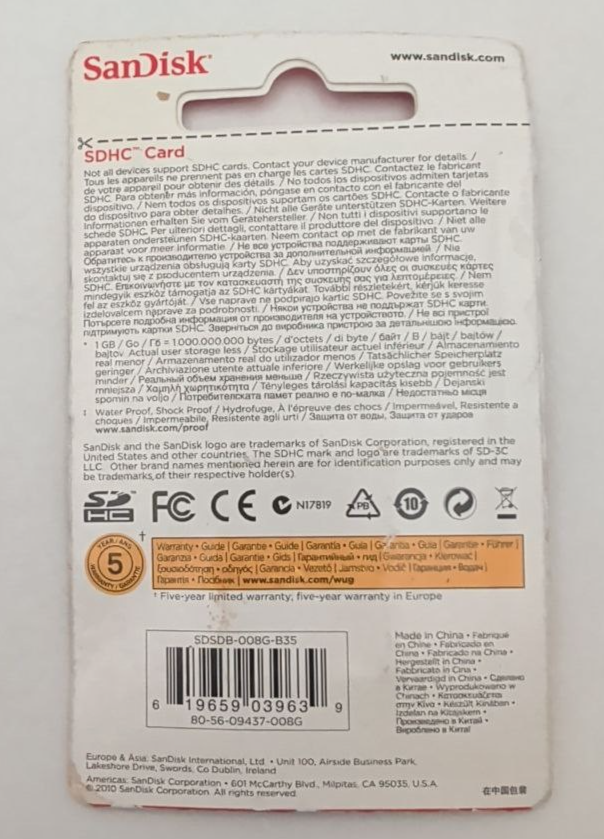 - SanDisk SDHC 8 GB Memory Card Class 10 High Speed Flash Storage for Cameras PC