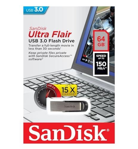 - Sandisk Ultra Flair USB Flash Drive, 64 GB, Silver (SDCZ73-064G-A46)
