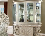 Features: Curio Cabinet Touch Light Included Fixed Shelves Oversized Crown, Raised Moldings, and Scrolled Motifs (Poly-Resin) Crafted with quality materials for lasting use Set Includes: One (1) Curio