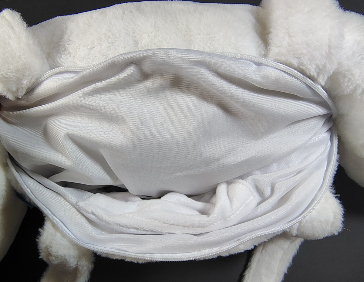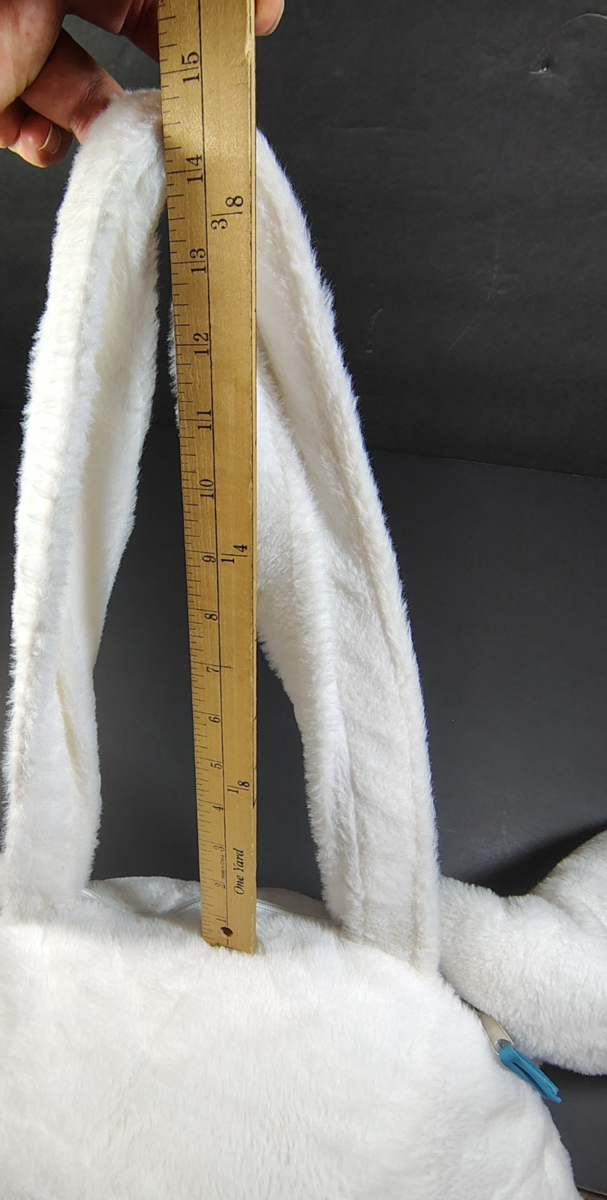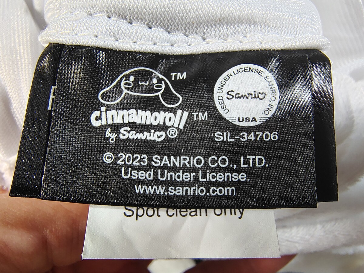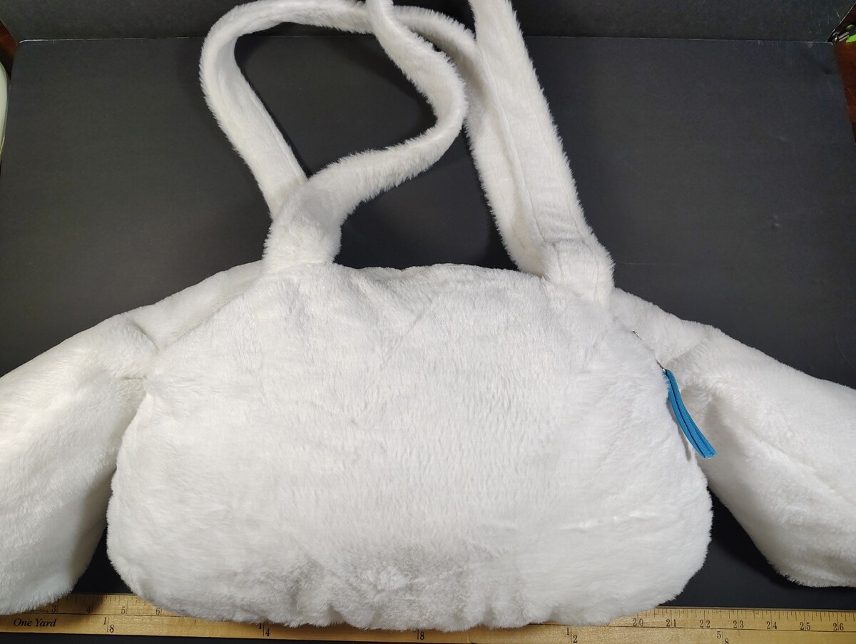 Cinnamoroll Fuzzy Figural Tote Bag. Now you can with this fuzzy figural tote bag made to look like Cinnamoroll's cute, smiling face. It has top carrying straps and a large zippered pouch. 28" across including ears Polyester Spot clean only
