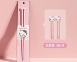 The Sanrio Hello Kitty Alloy Chopsticks are a fun and colorful addition to any child's kitchen or dining area. These Japanese chopsticks feature the popular Hello Kitty character in pink and white, making mealtime more enjoyable for young Hello Kitty fans. Made of durable alloy material. Does not have Hello Kitty written on the chopsticks. New.