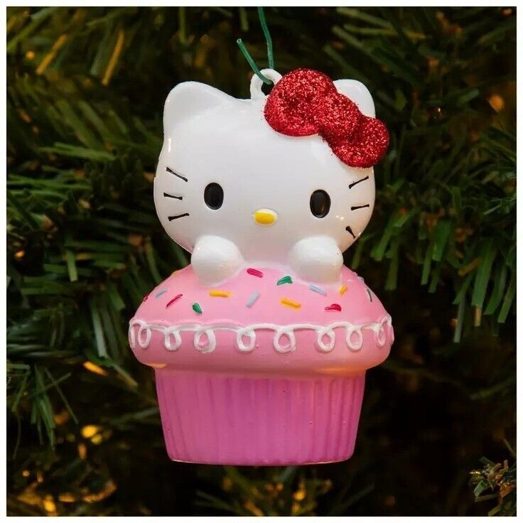 Add something sweet to your tree this holiday season, such as this Hello Kitty Cupcake Ornament. This plastic ornament features Hello Kitty peeking out of a decorated cupcake. She's wearing a sparkly bow that totally matches her sparkling personality! Use the silver string to hang this ornament alongside tinsel and colorful lights.