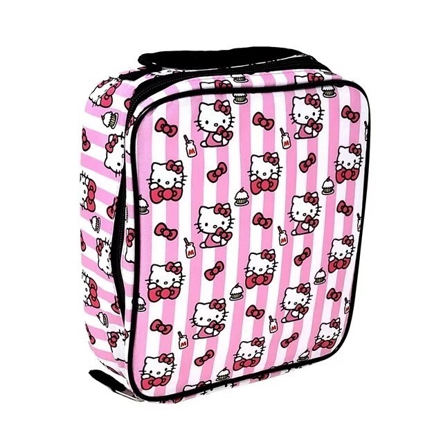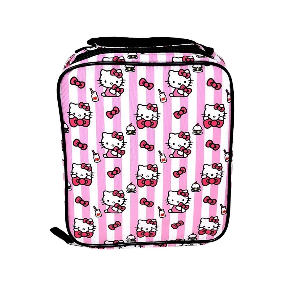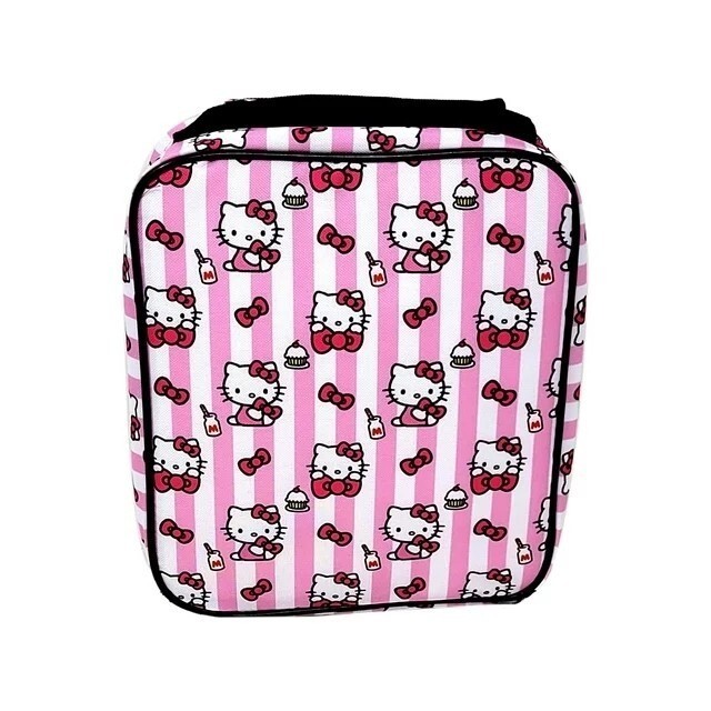 - Sanrio Hello Kitty Lunch Bag School Tote Insulated Pink Stripes Bows Cupcakes