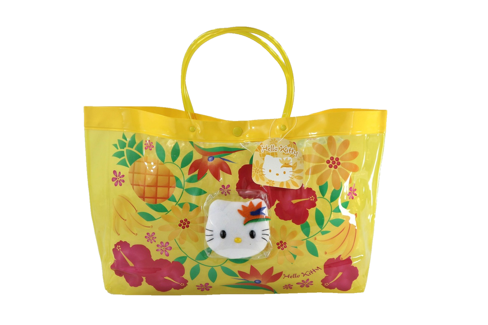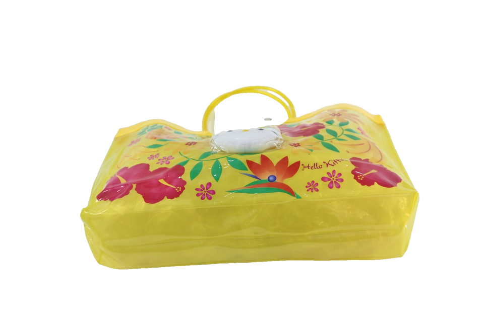 - This Vinyl Hello Kitty Tote bag is ideal for a beach trip, shopping trip, to work in a secured setting due to