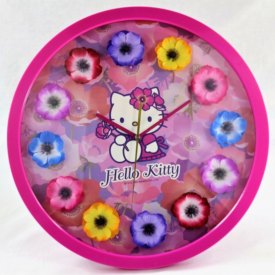 - Hello Kitty Wall Clock with floral design.
