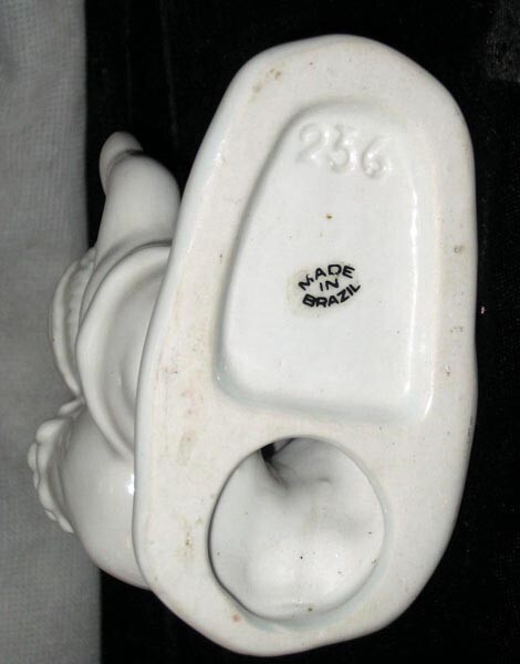 2. Made In Brazil White Lusterware Santa Claus On Skis Waving With Presents In His Bag