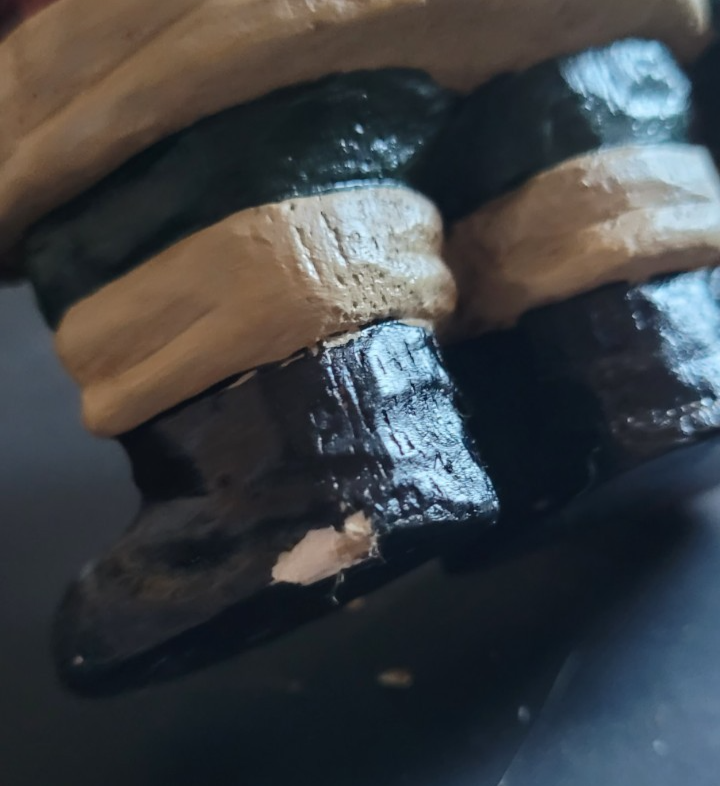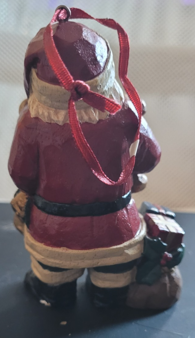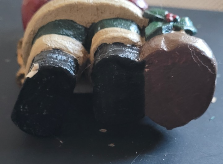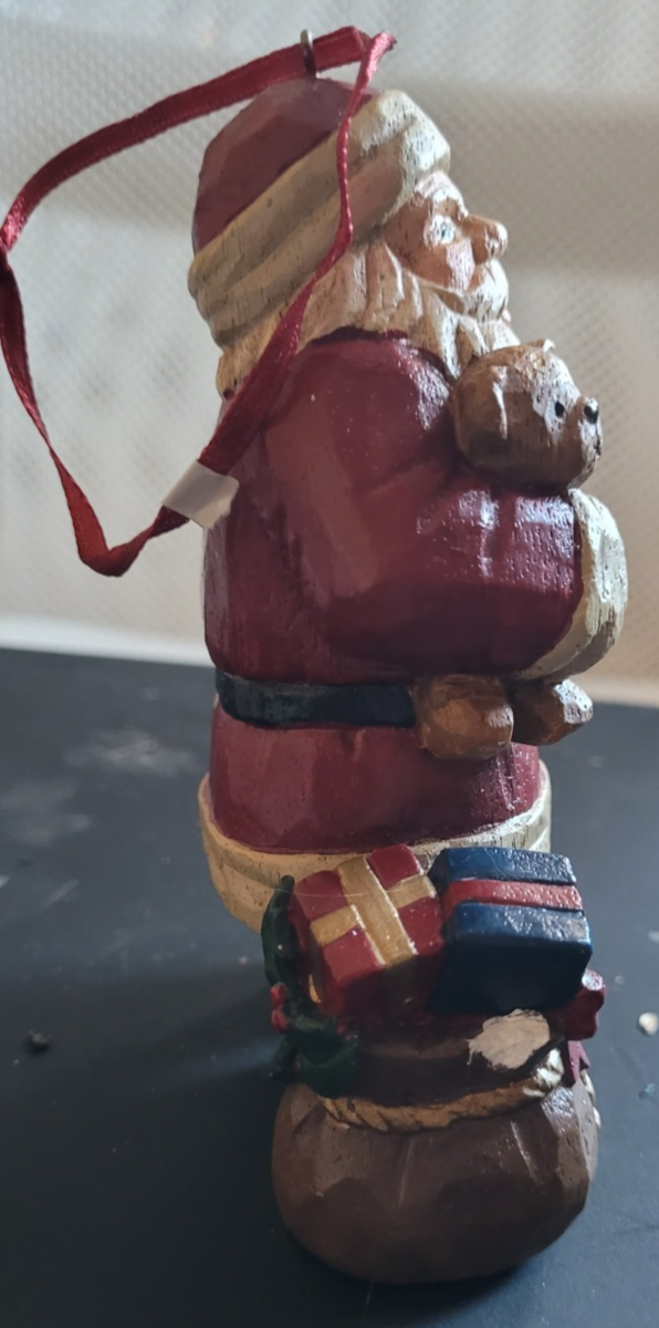 This Santa Clause has a small chip on one of the feet, as seen in the photos. It measures approximately 5 inches tall.