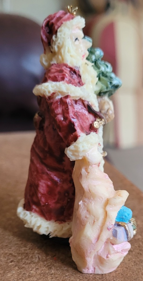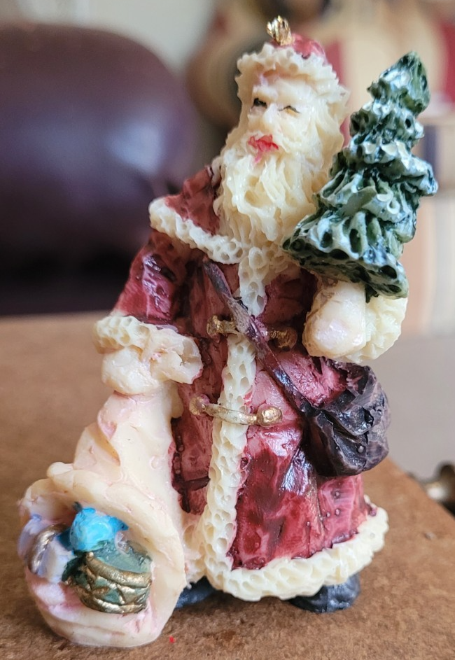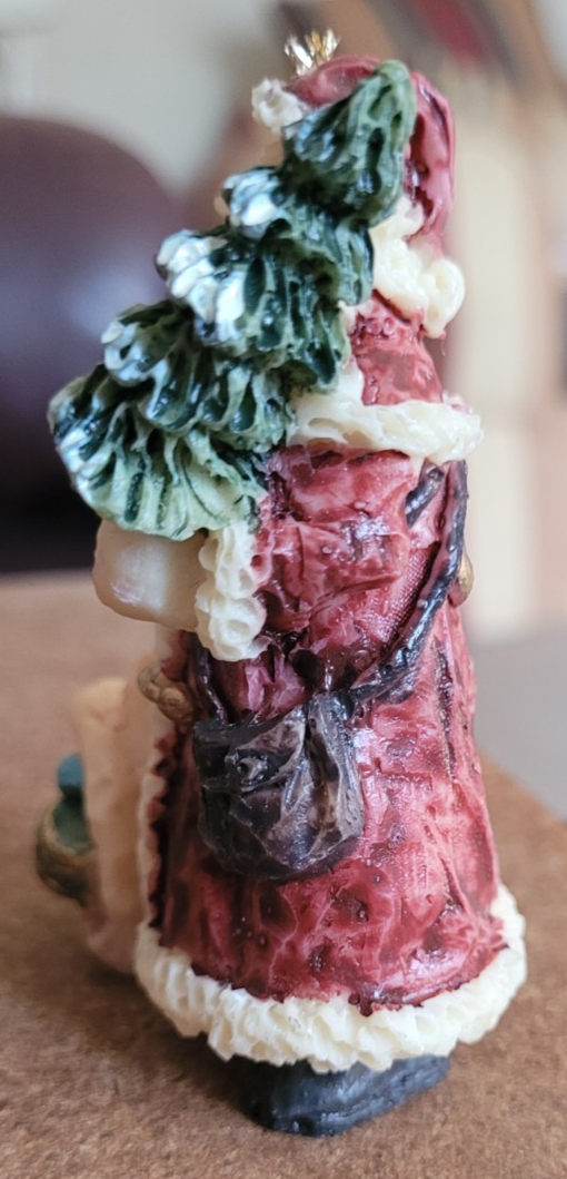 This Santa is in good used condition. There are no chips or cracks that I found. It measures approximately 3 inches tall.