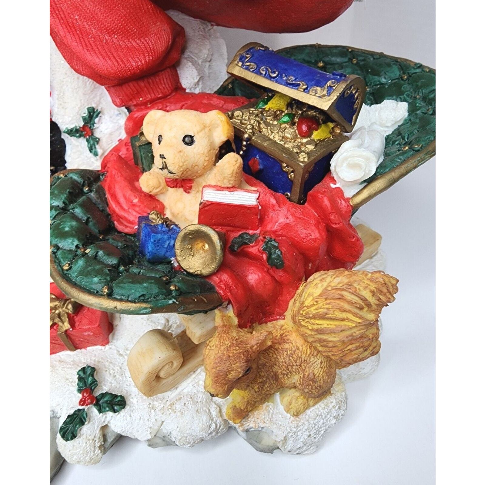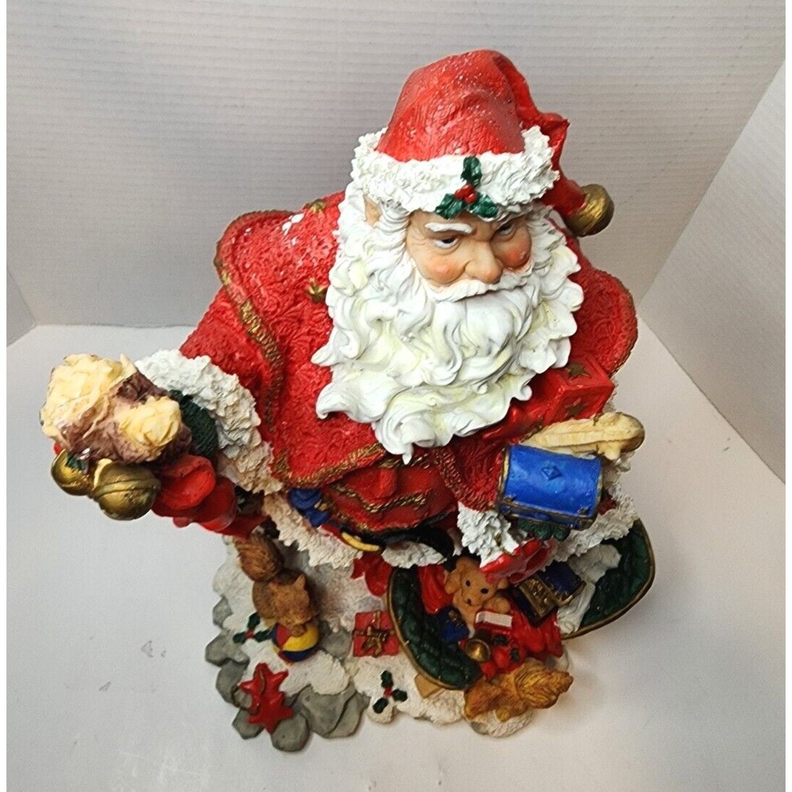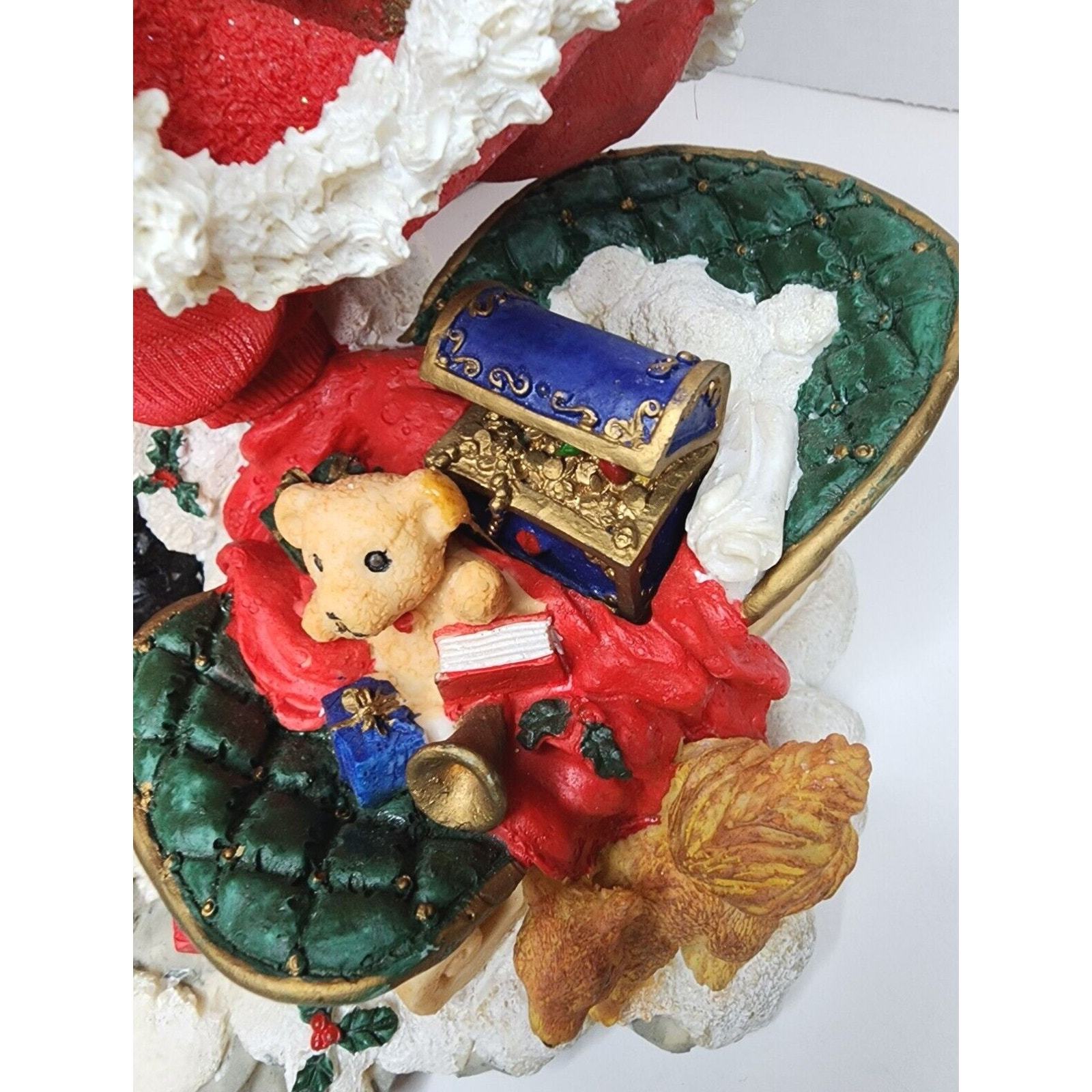 Santa Clause with Christmas Toys Teddy Bear Walking Stick 15 1/2 inches Resin. Spectacular addition to your holiday decor. This Santa will bring you holiday joy throughout the season. EXCELLENT CONDITION. FAST PROCESSING AND SHIPPING ?