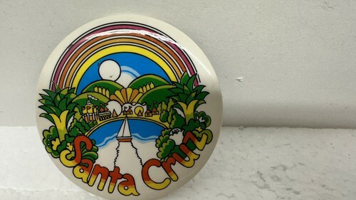 This pin is not handmade, but it still has great value. It is a great way to show off your love for Santa Cruz and the beach lifestyle. Add it to your collection of pinbacks or lunchboxes and show off your style.